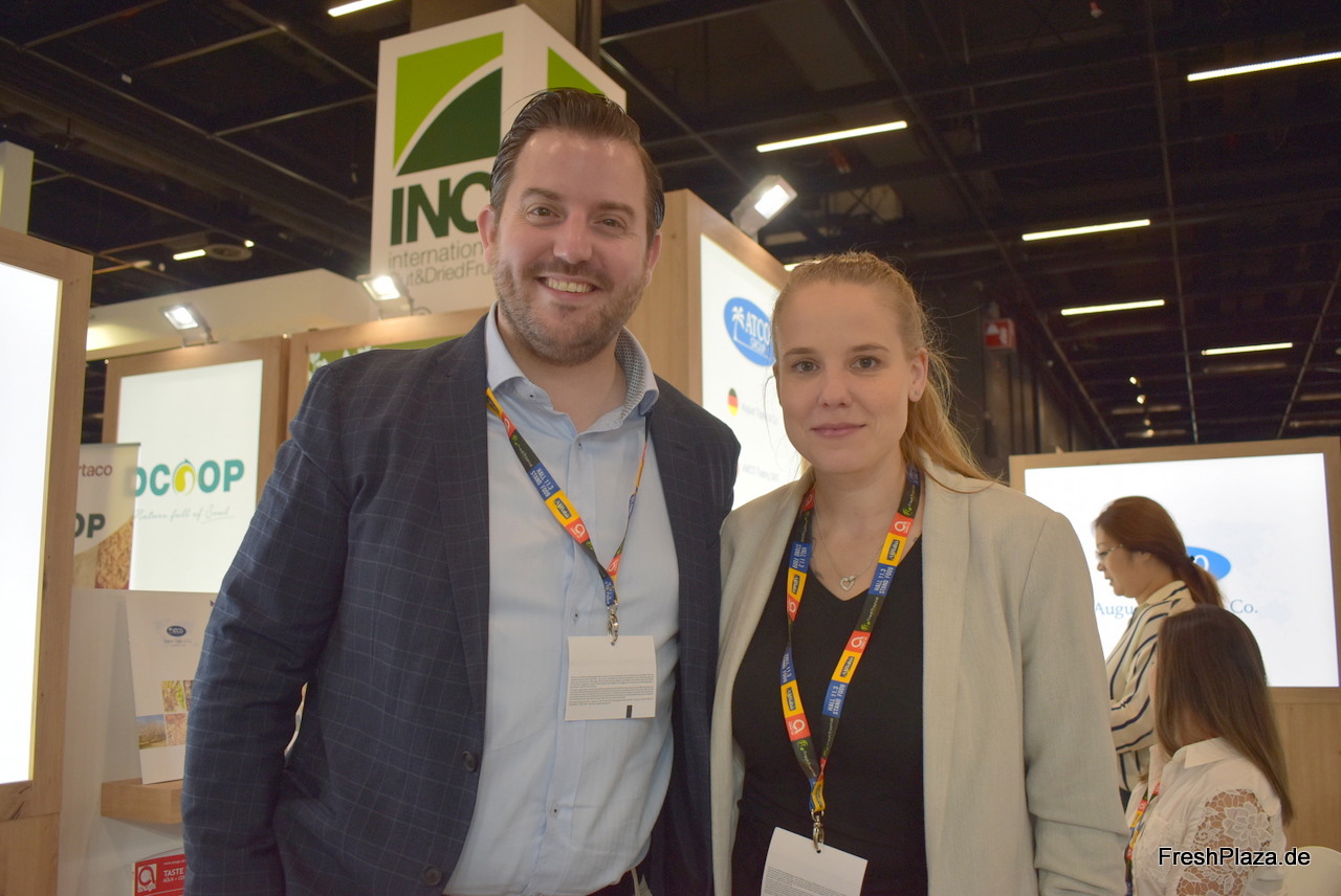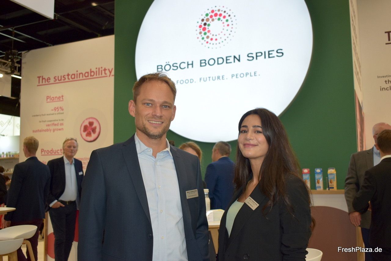Managing Director Patrick Burmester und Sinem Mercan von der Bösch Boden Spies GmbH & Co. KG. Das Unternehmen bietet Rohstoffe, Nüsse und Trockenfrüchte für verschiedene Bereiche an und ist international aktiv.