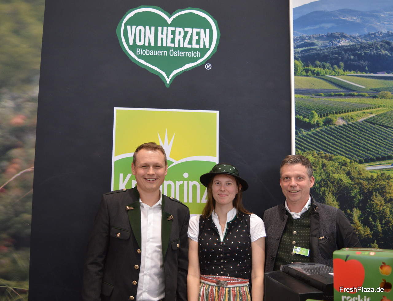Das Team von Von Herzen Bio präsentierte sich wie gewohnt am steirischen Gemeinschaftsstand. Im Bild: Walter Wilfling und Hannes Schaffer mit einer Kollegin.