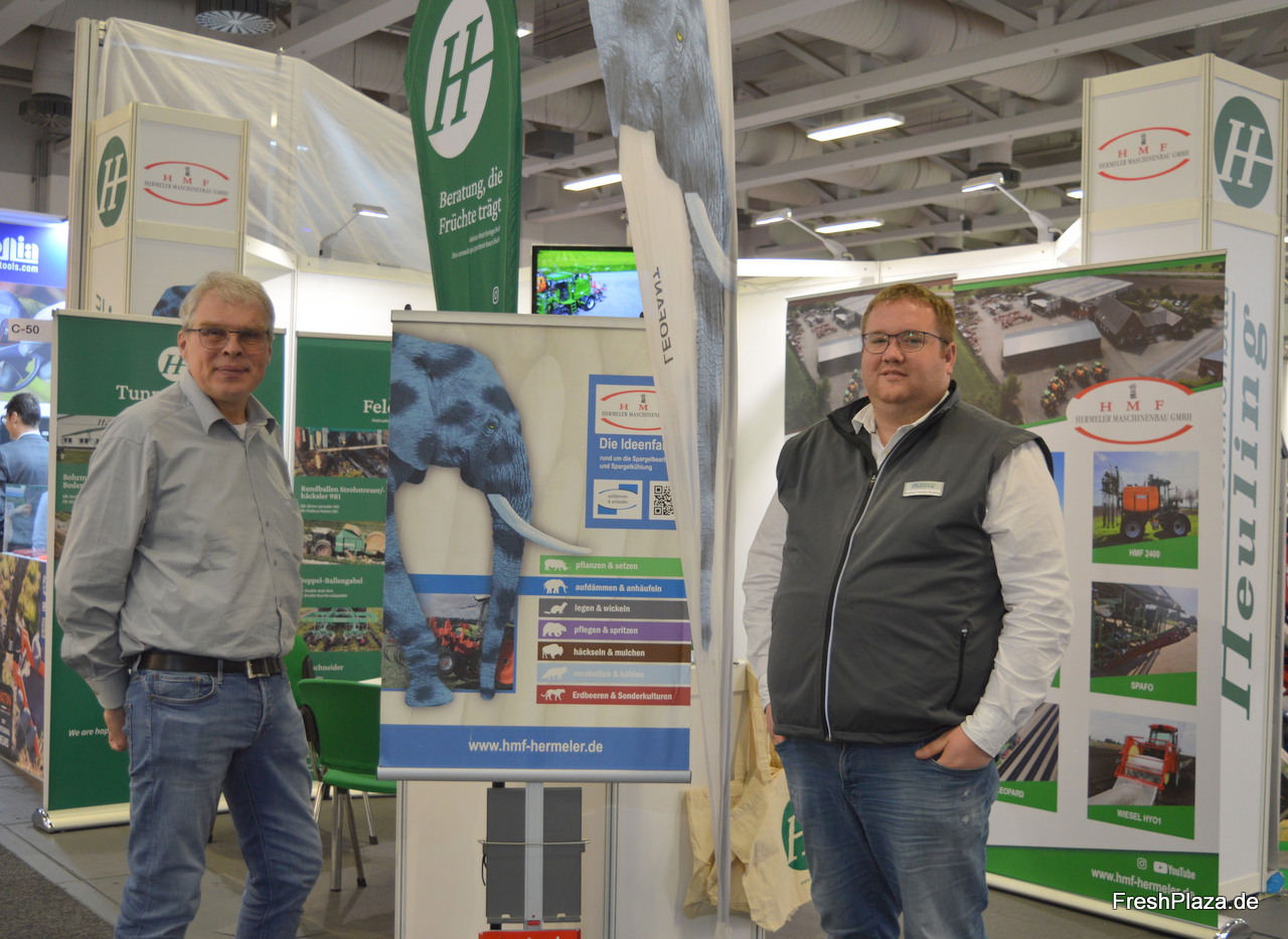 Der Name Mefus & Frisch steht bereits seit über sechs Jahrzehnten für hochmoderne Kältetechnik für verschiedenste Obst- und Gemüseerzeugnisse, darunter Beerenobst und Spargel. Seniorchef Gerhard Frisch (r) blickte auf einen gelungenen ersten Messetag zurück.