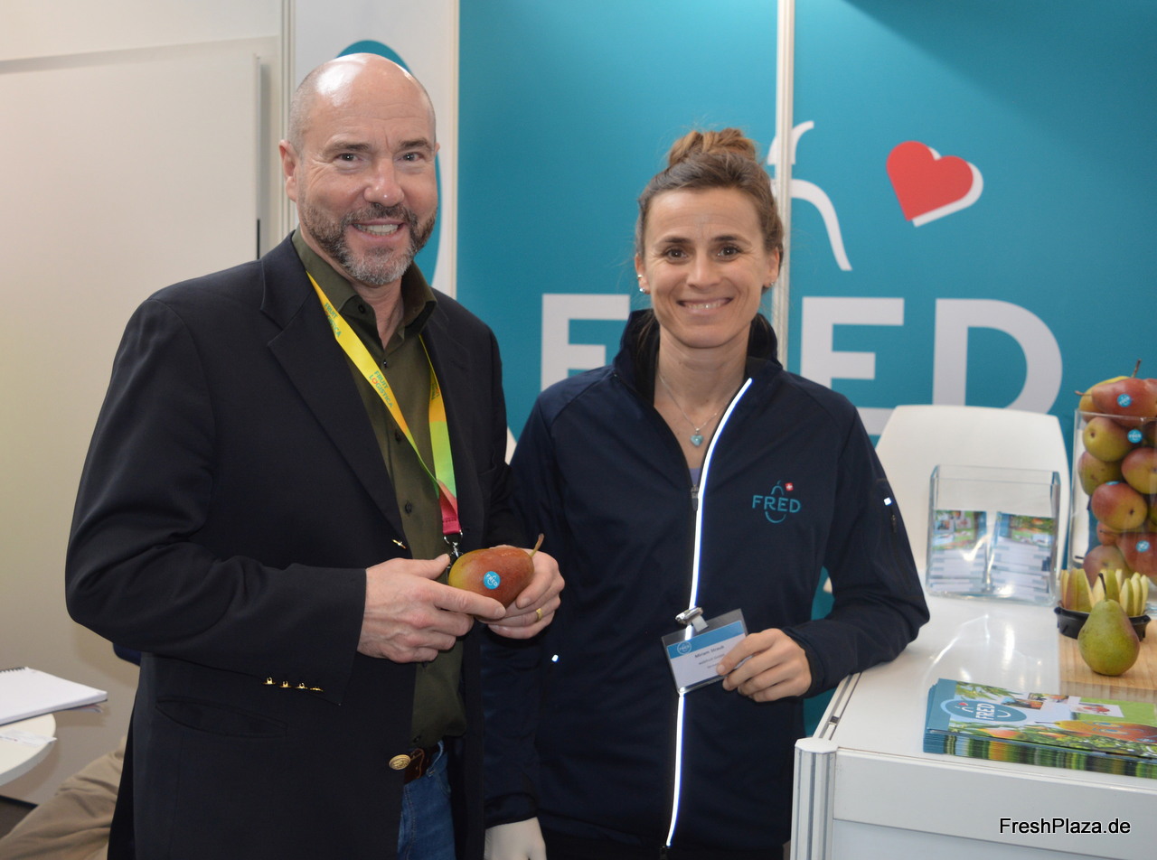 Die Varicom GmbH rückte die Schweizer Birnensorte Fred in den Vordergrund. Im Bild: Michael Weber und Miriam Straub.