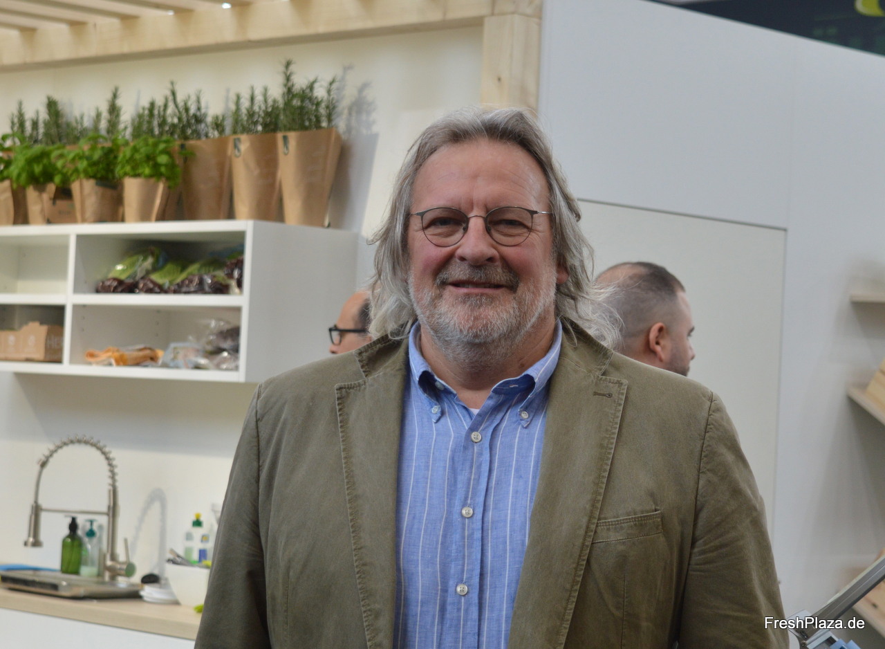 Jurgen van Herp, Sales Director der EcoRetail GmbH (ehemals Surplus Systems-Retail GmbH) war in diesem Jahr als Besucher vor Ort. Das Unternehmen entwickelt und vertreibt Aufschubsysteme und Verkaufsdisplays für verschiedenste Lebensmittel, darunter auch Obst und Gemüse.