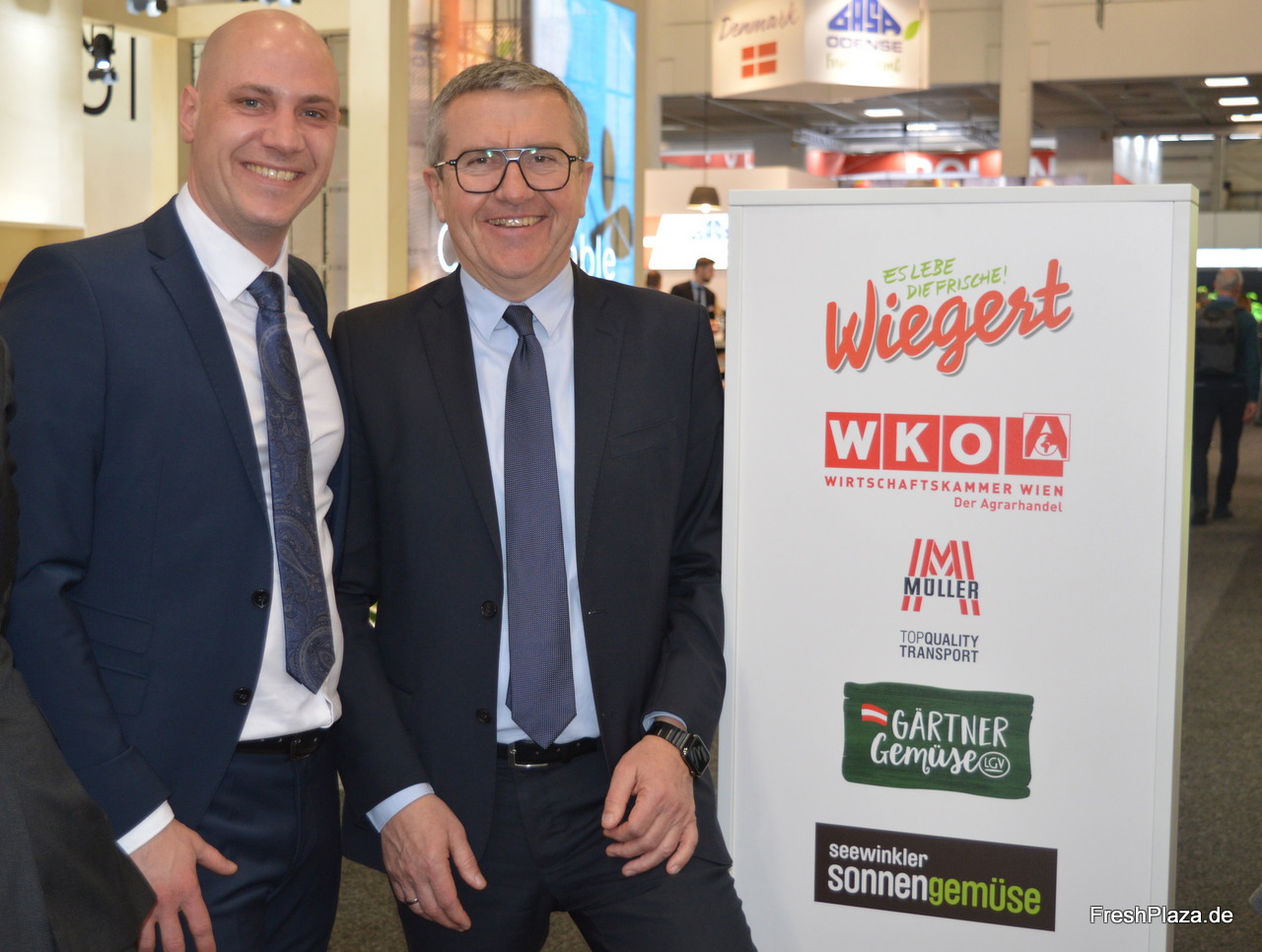 Andreas Pregartner und Pascal Felley von der Fair Fruit Group. Das Unternehmen verfügt über Produktionsanlagen in u. a. Ungarn, Deutschland, der Schweiz und Portugal. Zur Produktvielfalt zählen etwa Bio-Aprikosen und -Granatäpfel.