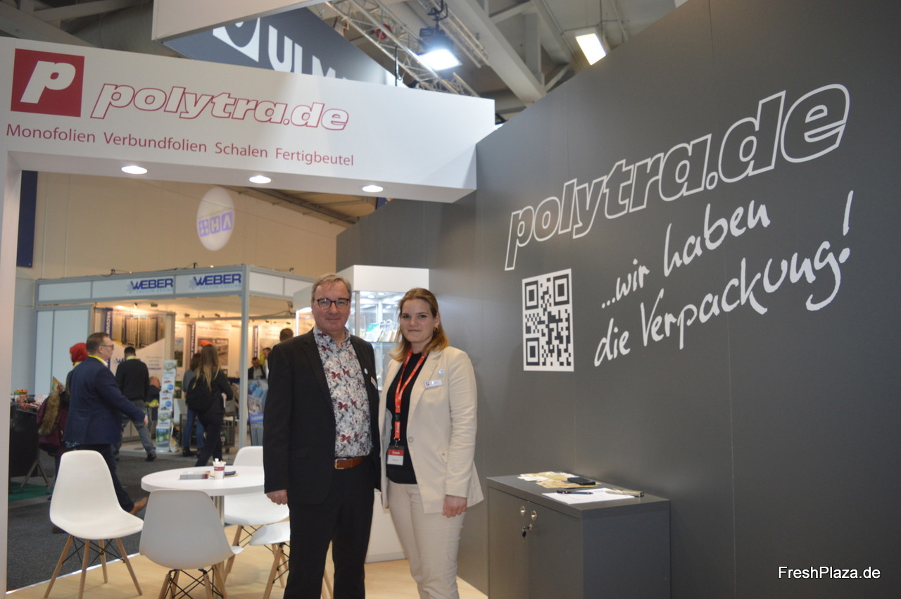 Matthias Aysche und Sonja Link von der Polytrade GmbH. Der Verpackungsspezialist feiert in diesem Jahr dessen 40. Geburtstag.