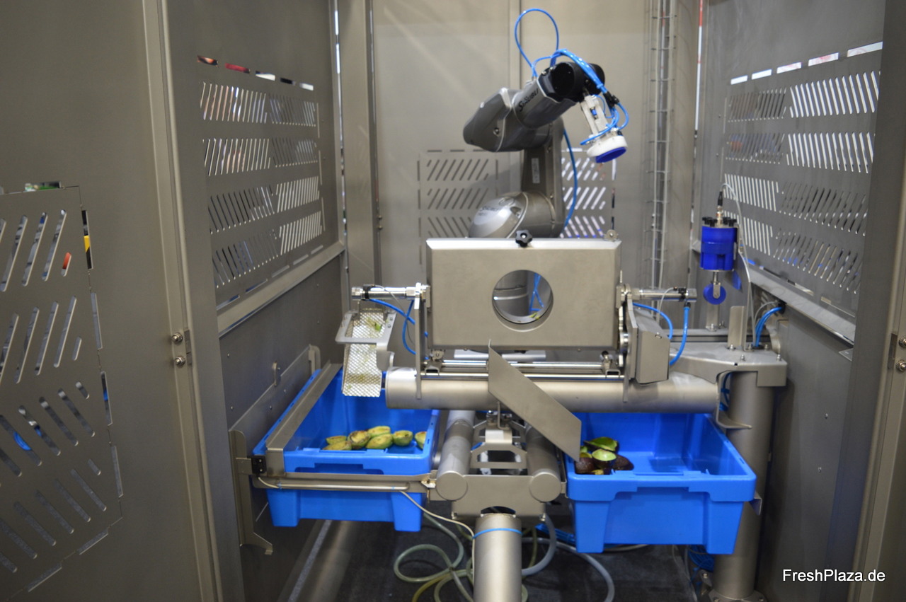Die Innenseite der vollautomatischen Roboter-Lösung zum Verarbeiten von Avocados