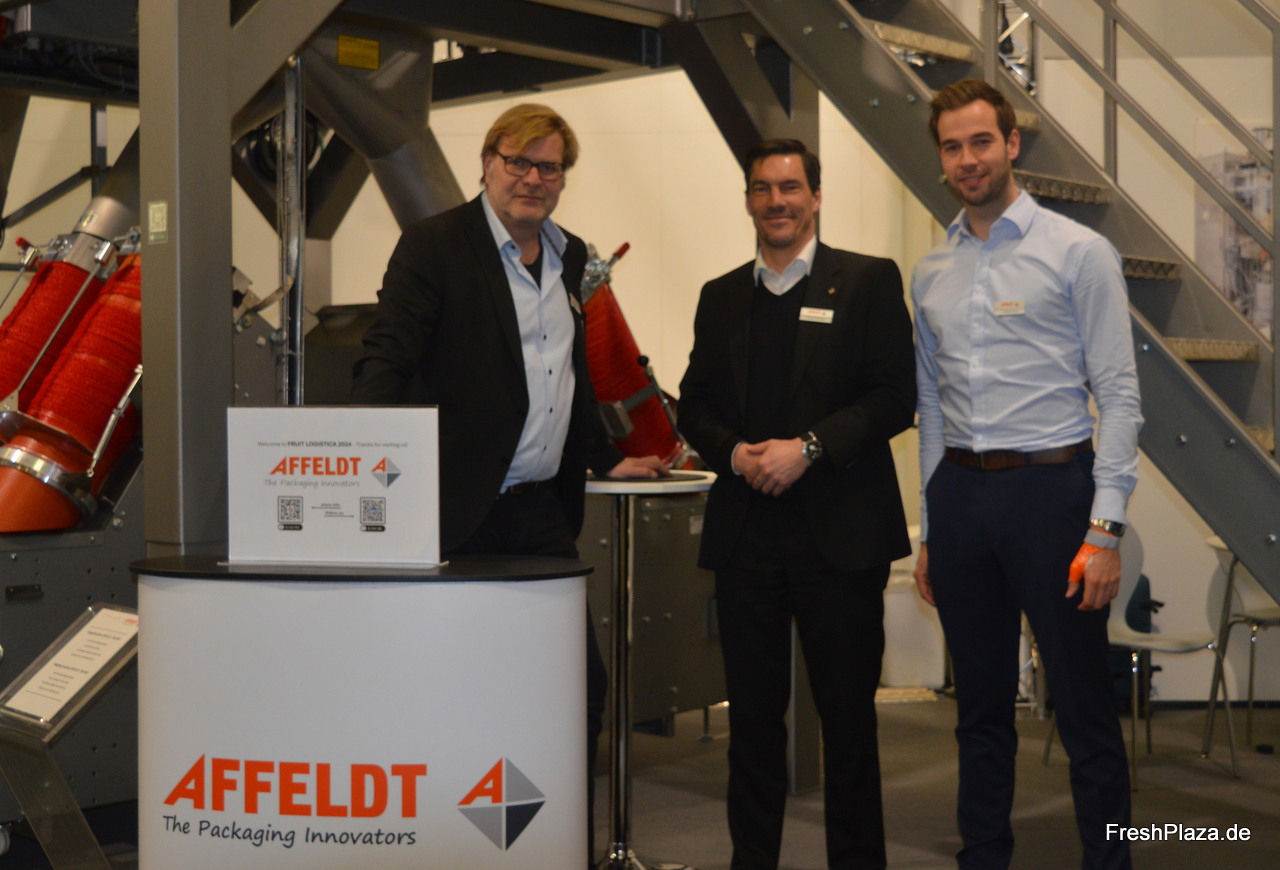 Thomas Wicht und Jürgen Faby (Faby Fruchtgroßhandel) und Nils Wegener (Wegener Frucht) am Stand der MAL