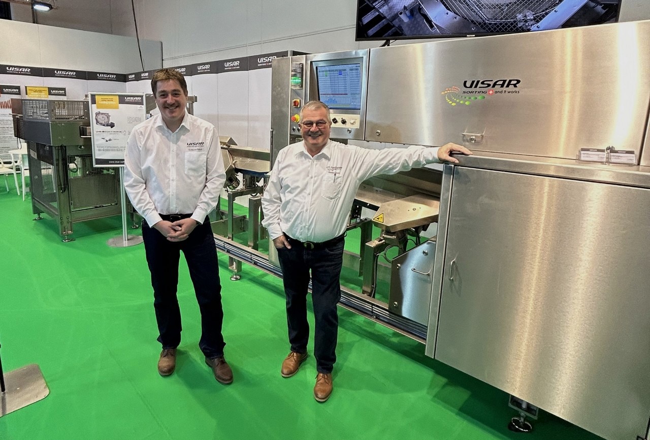 Daniel Pitton (r), Chef des Schweizer Maschinenbauunternehmens Visar Sorting, und ein Kollege. Das Unternehmen ist bekannt für seine optischen Sortierlinien, u. a. für Kartoffeln und Möhren.