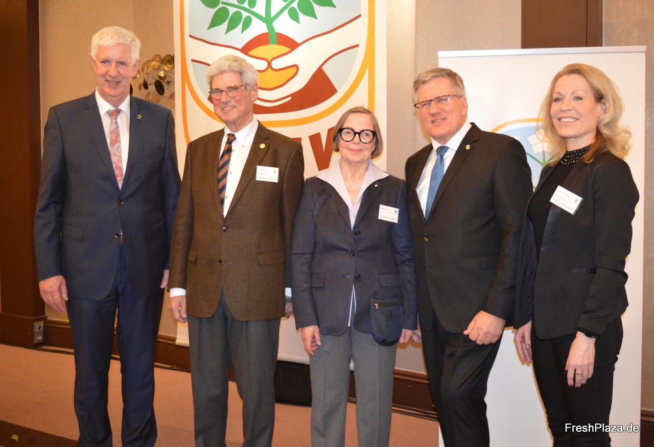 Geballte Fachkompetenz in Sachen Kartoffeln mit u. a. Olaf Feuerborn (Vorstandsvorsitzender UNIKA e.V.), Dieter Tepel (KMG) und DKHV-Präsidenten Thomas Herkenrath. Dieter Tepel erhielt beim diesjährigen Kartoffelabend die Ehrenmedaille des DKHV für seinen unermüdlichen Einsatz.