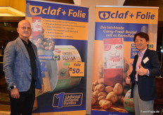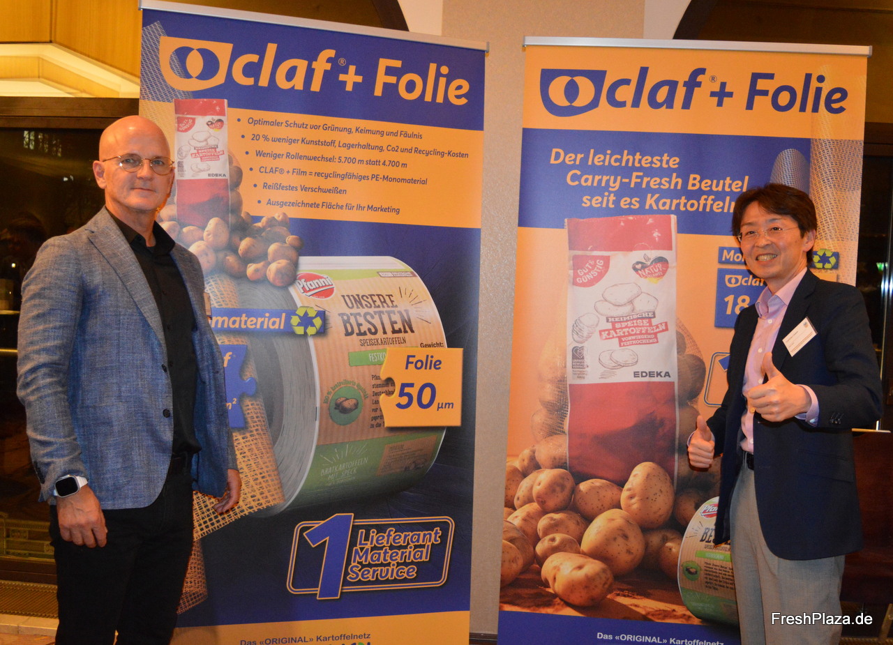 ANCI SAS / Claf + Folie hat einen leichten und nachhaltigen Carry-Fresh Beutel für den Kartoffelsektor entwickelt. Im Bild: Harry Albus und Yoshihiko Usawa