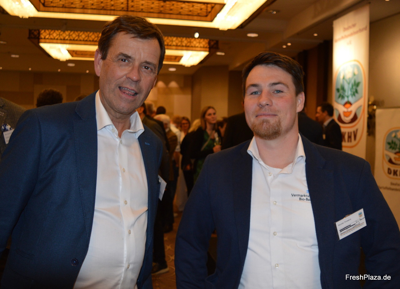 Nicolai Timaeus (r) von der Vermarktungsgesellschaft Bio-Bauern mbH im Gespräch