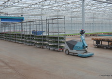 Automatisierung 2.0: mit Beetpflanzen beladenen und vollautomatischen Schubkarren.