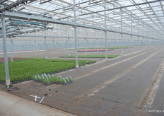 Im Doppelzweckglashaus der Emsland Gemüse steht nun alles im Zeichen des Kulturwechsels. In wenigen Tagen gibt es hier Tomatenpflanzen, so weit das Auge reicht.