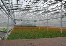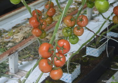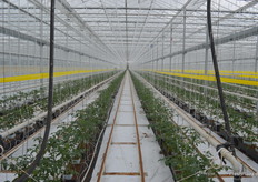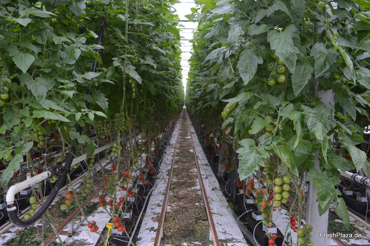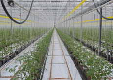 Einblick in den Tomatenanbau. Neben den drei Hauptsorten werden ebenfalls Sortenversuche, etwa mit der HR-Cocktailtomate Marvelion, getätigt. Einen großzügigen Umstieg auf HR-Sorten wird es jedoch Savenije zufolge in den kommenden Jahren nicht geben, und zwar aus mehreren Gründen: "Die Haltbarkeit und Fruchtgröße bzw. Ertragssicherheit der bisherigen Sorten hat uns noch nicht überzeugt. Darüber hinaus sind wir bislang vom Jordanvirus verschont geblieben, weshalb die absolute Notwendigkeit Maßnahmen zu ergreifen bei uns fehlt. Schließlich bieten HR-Sorten auch keine hundertprozentige Garantie, dass das Virus nicht auftritt."