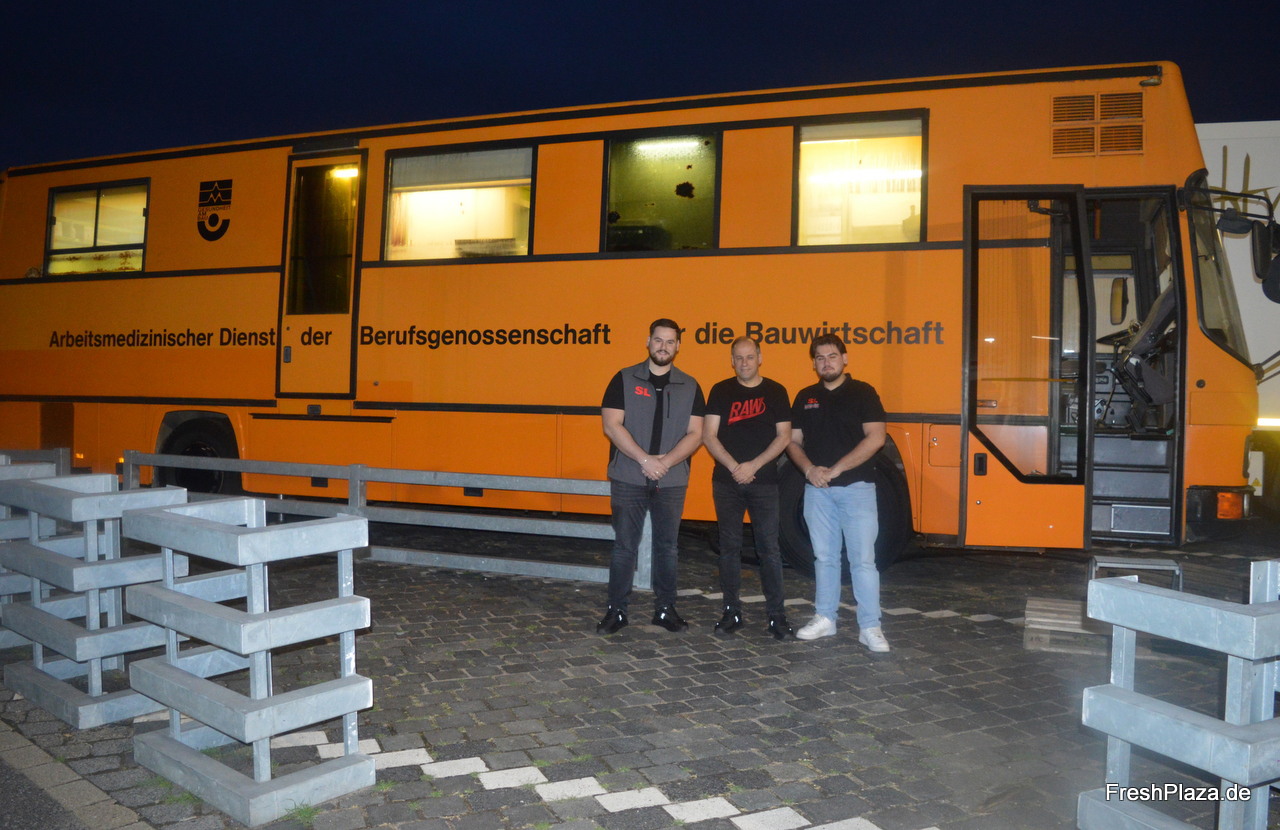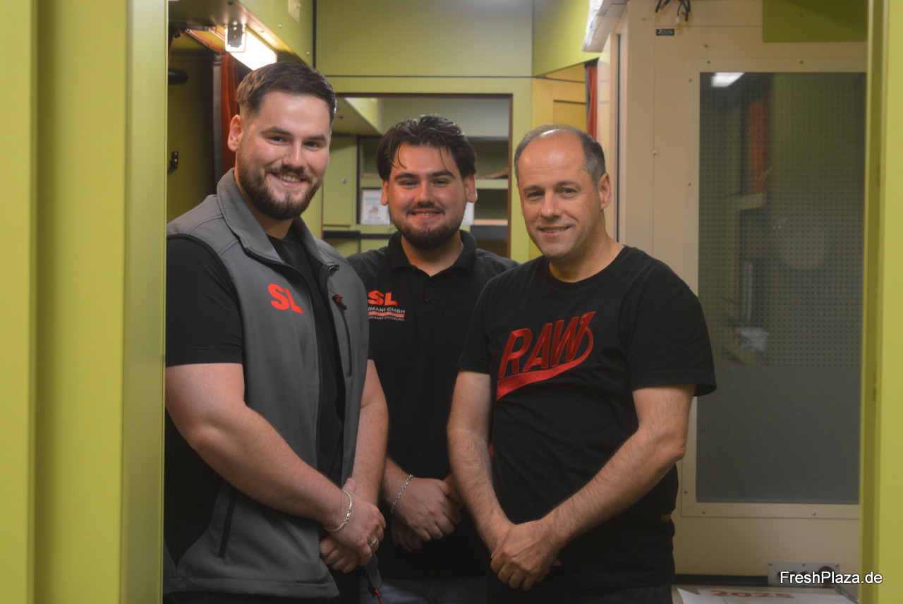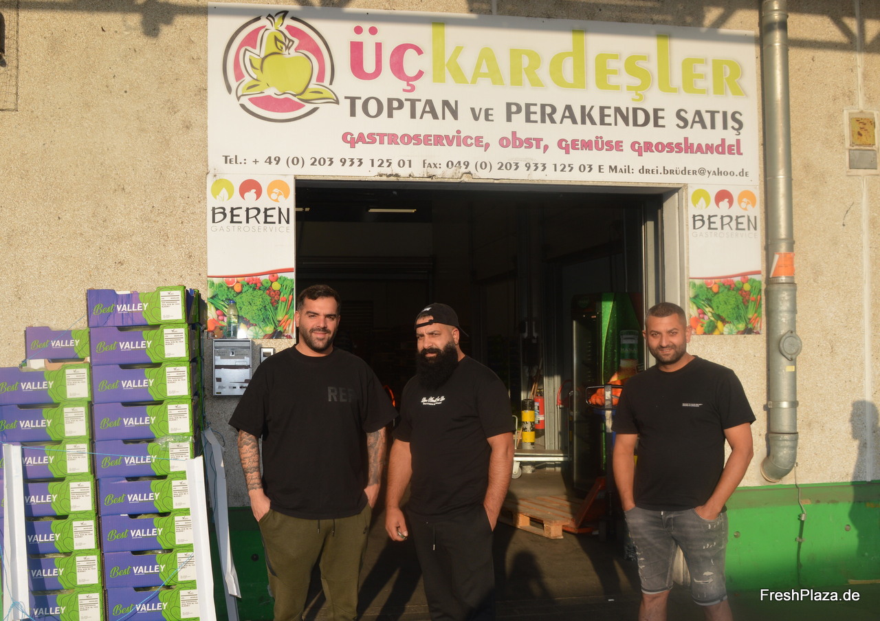 Nach der Schließung des Düsseldorfer Großmarktes fand Sadri Limani, langjähriger Mitarbeiter der Konrad Koester GmbH, ein neues Zuhause am örtlichen Großmarkt Duisburg. Im Bild: Sadri (m) und seine beiden Söhne Jasin (l) und Jeton.