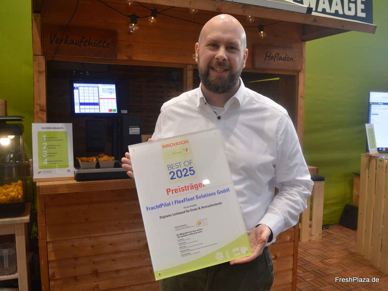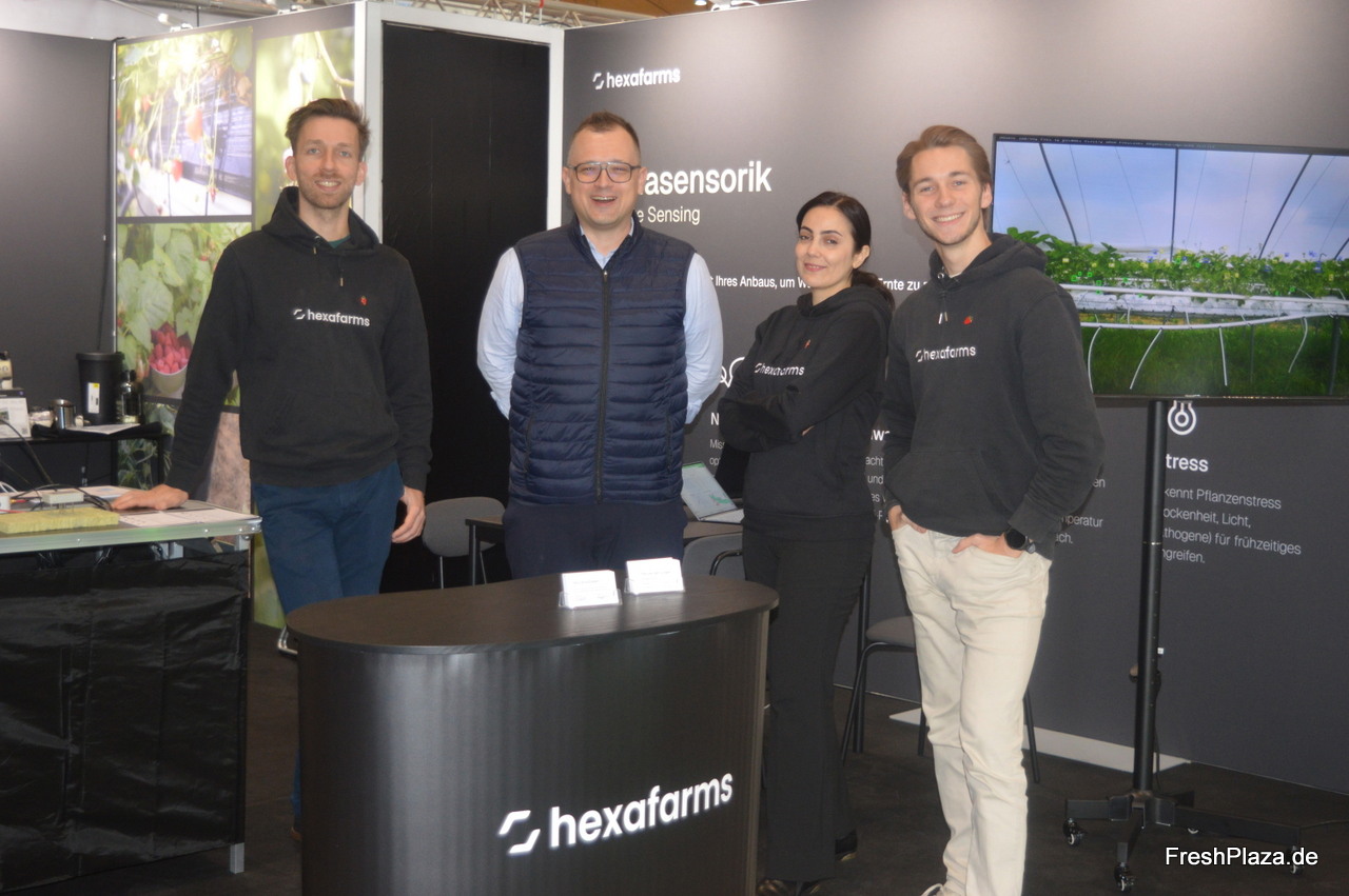 hexafarm hat sich in wenigen Jahren zum anerkannten Zulieferer des Beerenobstsektors entwickelt. Das Unternehmen bietet ein breites Portfolio an KI-gestützten Tools zur Pflanzengesundheit und Ertragsoptimierung, so Salesmanager Felix Kirschstein (2.v.l.).