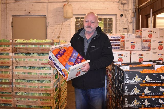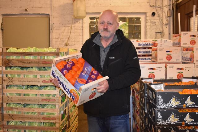 Inhaber Heinz Karstner der Firma Gebr. Gottschalk zeigt seine frischen Orangen