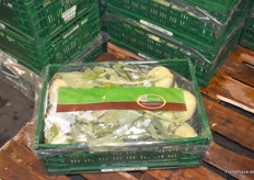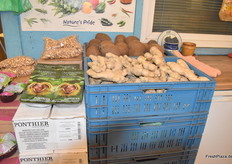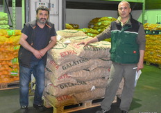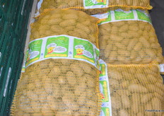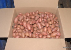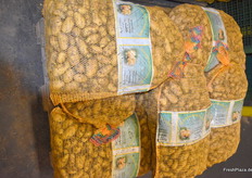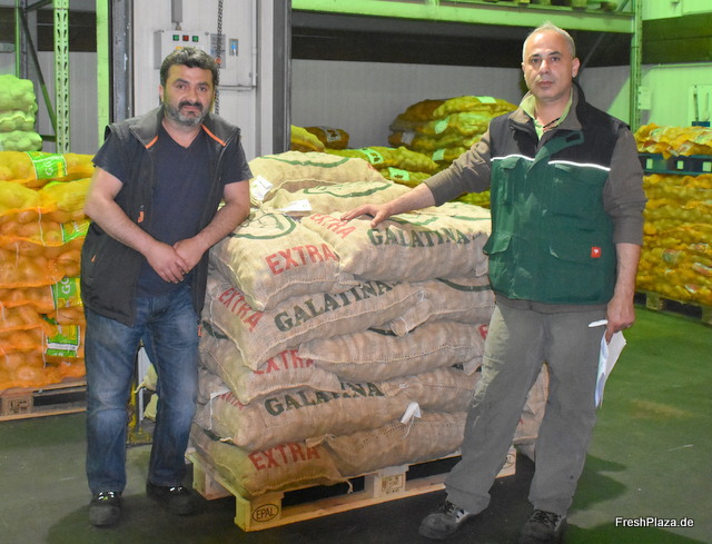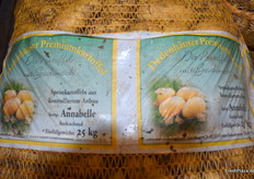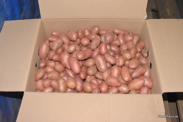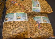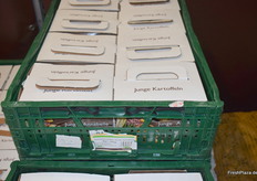 Das Verkaufsteam zeigt die italienische Galatina- Kartoffeln die momentan sehr gut vermarktet werden.