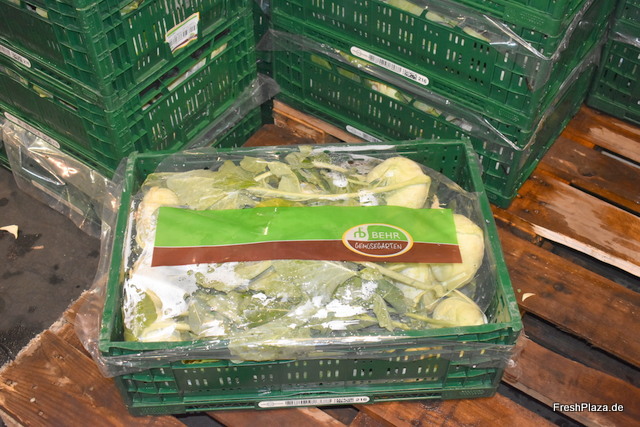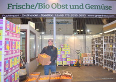 Dirk Ruthenberg ist seit kurzem der Verkaufsleiter auf dem Stand der Behr AG und Hintze GmbH. Die erste Mairüben aus lokalem Anbau sind diese Woche eingetroffen. Nächste Woche erden voraussichtlich die erste deutsche Eissalate vermarktet, teilt er mit.