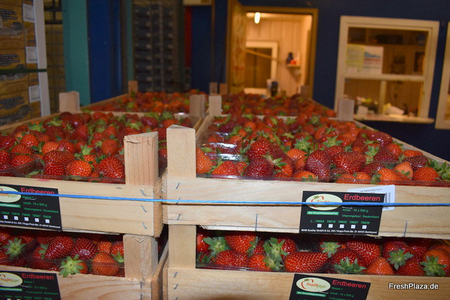 Der Stand der Lührs GmbH: das Unternehmen vermarktet jetzt aktuell großen Mengen regionale Erdbeeren von verschiedenen Produzenten.