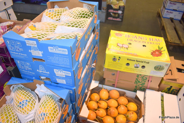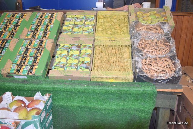 Der Stand des KBF Fruchtvertriebs: hier findet man u.a. großen Mengen an Exoten.