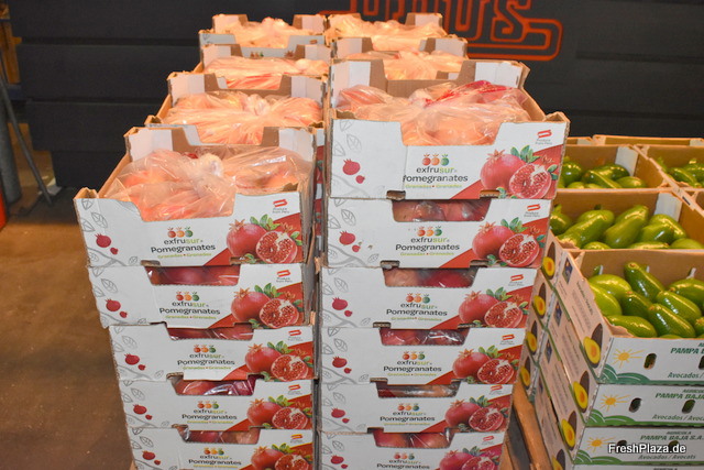 Momentan sind die letzte Zitrusfrüchte aus Ägypten im Markthandel, aber demnächst wird auf Süd-Afrika umgestiegen. Auch Granatäpfel und Sübkartoffeln werden unter dem jeweiligen Label vermarktet.