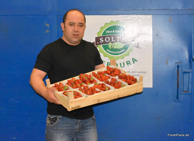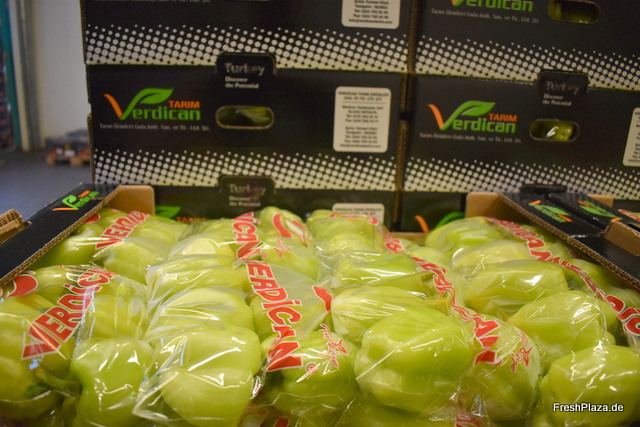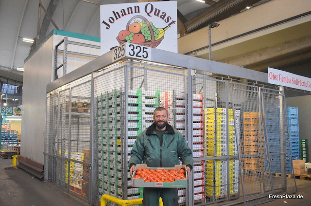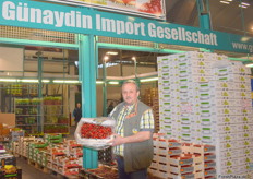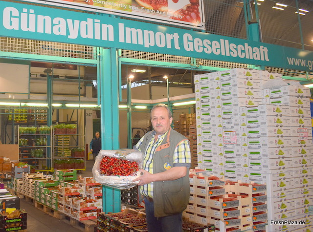 Fikret Günaydin der gleichnamigen Handelsgesellschaft: die Firma verhandelt u.a. ganzjährig Spitzpaprika aus türkischem Anbau. Auch Granatäpfel, Süßkirschen und die exklusive Kirkagac-Melone werden aus der Türkei bezogen und sowohl auf dem Großmarktstand als auch im Ausliefergeschäft vermarktet.
