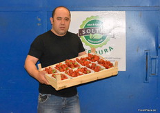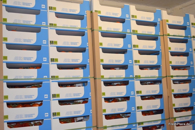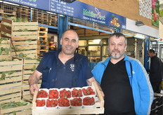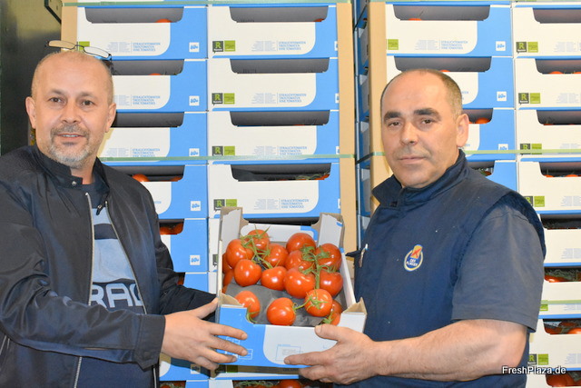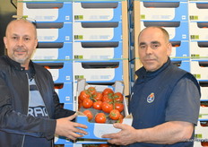 Geschäftsführer Mehmet Celebi und ein Mitarbeiter zeiugen ihre frischen Tomaten.