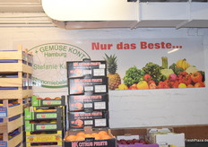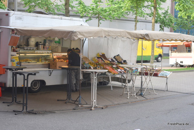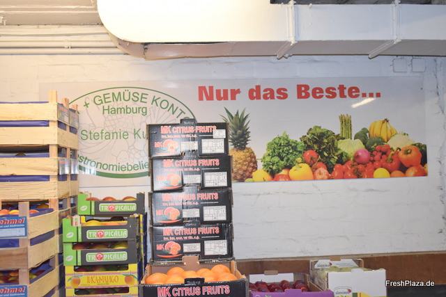 Auf den hiesigen Marktständen findet man selbstverständlich Erzeugnisse aus der Hamburger Großmarkthalle.