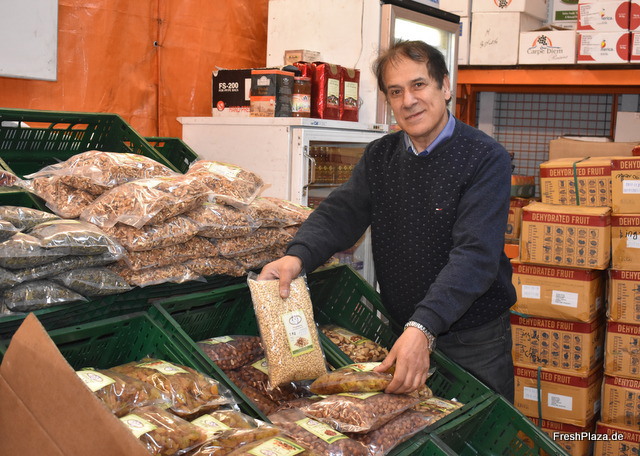 Herr Rahimi der K.R.S. Fruchthandel GmbH ist spezialisiert auf Nüsse, Feigen und Datteln, u.a. aus dem Nahen Osten.