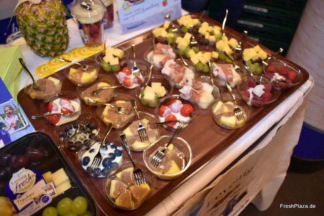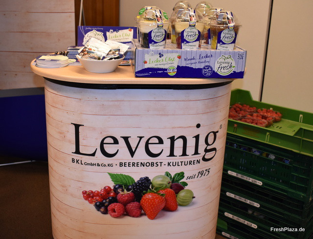Auf dem Stand der Levenig Beerenobst GmbH. Die Firma liefert seit kurzem knackfrische Beerenobst-Kulturen in Bechern und mit verschiedenen Toppings für Convenience- Verbrauch.