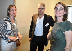 Hélène Deruwe und Fréderic Rossenau der Firma Greenyard im Gespräch mit Herrn Thies Claußen - Qualitätsmanager der Global Fruit Point GmbH (Mitte).