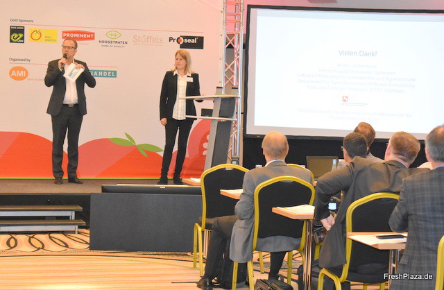 Kaasten Reh des Fruchthandel Magazine und Frau Jürkenbeck auf der Bühne