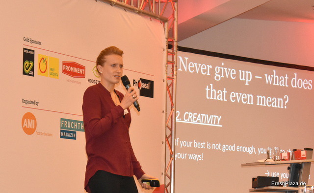 Die letzte Sprecherin des Tages: Kathrin Längert, Ex- Fußballnationalspielerin. Ihre Botschaft an die Branche: Never give up!