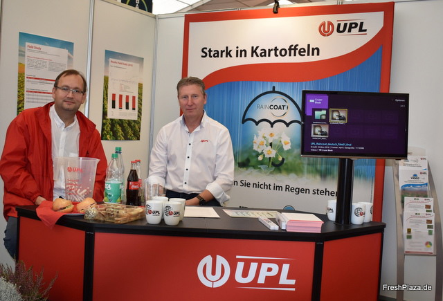 An Stand der Firma UPL: Dr Michael Krajewsku und Herr Große Bley. Das Unternehmen vertreibt eine Vielzahl an Dünge und Pflanzenschutzmitteln.