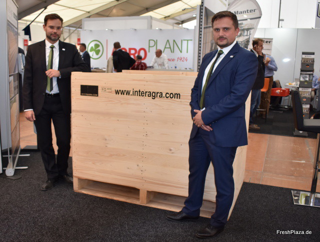 Kristof Mesjasz und Leszek Baba der polnischen Firma Inter Agra. Das Unternehmen produziert und vermarktet robuste Holzkisten für Lagerkartoffeln in ganz Europa. Die Lagerkisten eignen sich ebenfalls für übriges Gemüse.