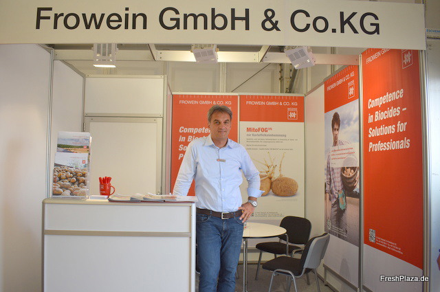 Steffen Konig am Stand der Frowein. GmbH. Unter dem Namen MitoFeg vertreibt das Unternehmen nunmehr 40 Jahre ein hochwertiges Schädling-Bekämpfungsmittel.