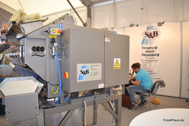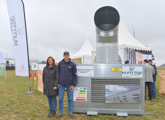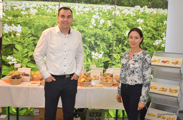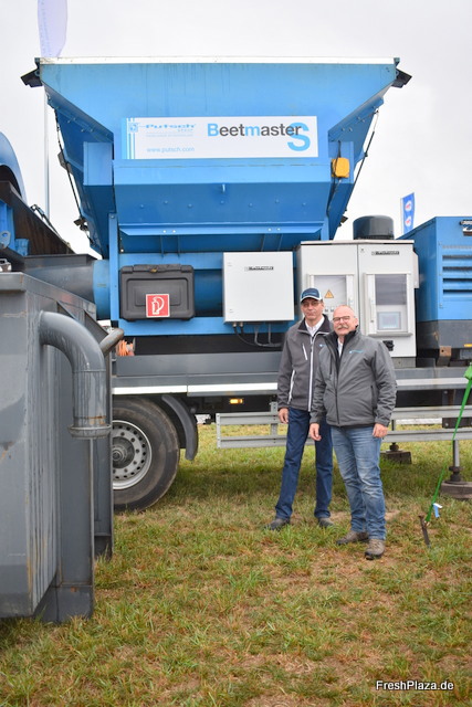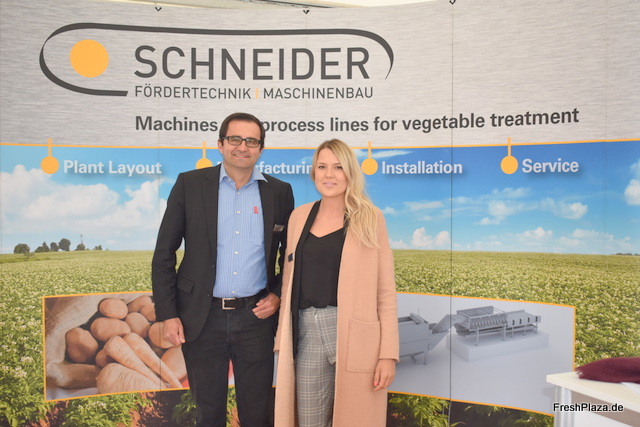 Alexander Rapp und Julia Henschel von Scheider Fördertechnik. Die Firma liefert hauptsächlich Komplettlösungen für die vollständige Aufbereitung von Kartoffeln, Karotten und sonstigem Wurzel- und Knollengemüse. Die neueste Maschine ist eine hochwertige Waschanlage für u.a. Kartoffeln.