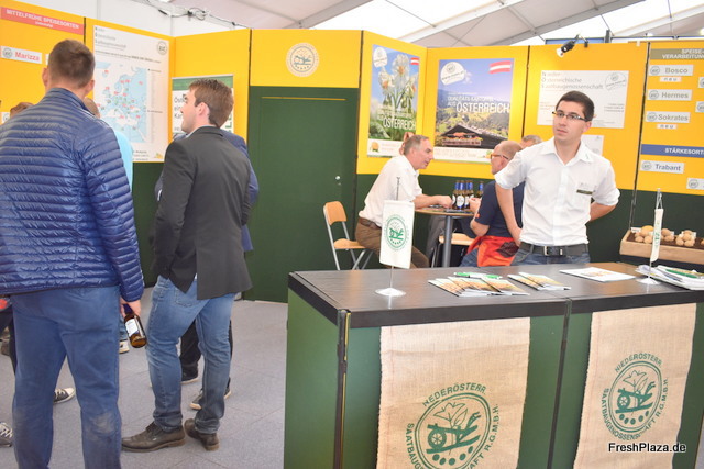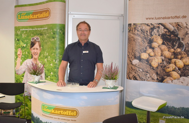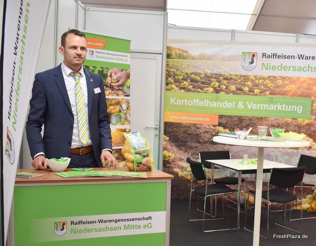 Am Stand der Raiffeisen Warengenossenschaft Niedersachsen. Unter dem Label Kartoffelland Hagen werden regionale Abpackkartoffeln für den LEH vermarktet.