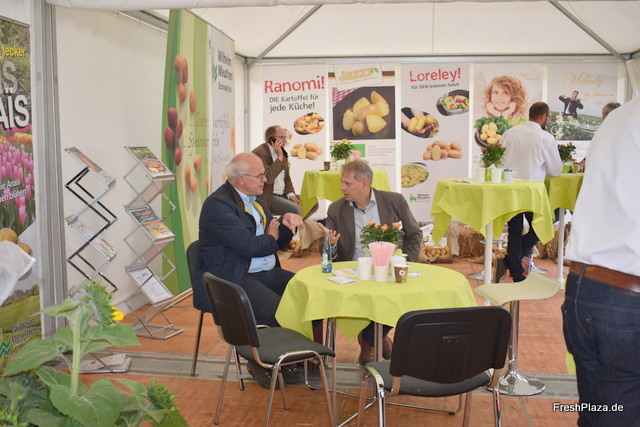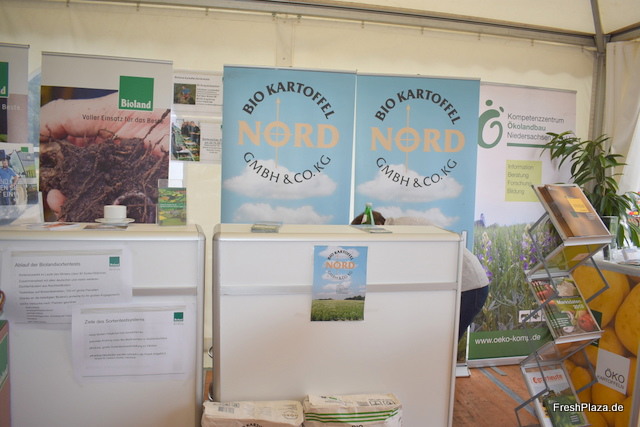 Die Vertretung des Saatgut-Lieferanten Solana. Das Züchterhaus präsentierte u.a. vier biologische Kartoffelsorten.