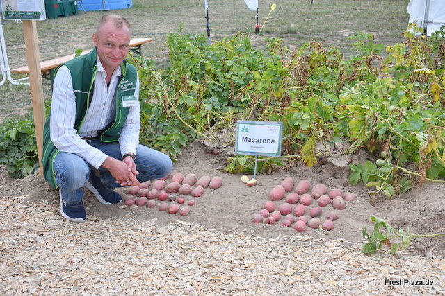 Dennis Behrendt des Saatgutlieferanten Niehoff präsentiert die neue Speisesorte Macarena.