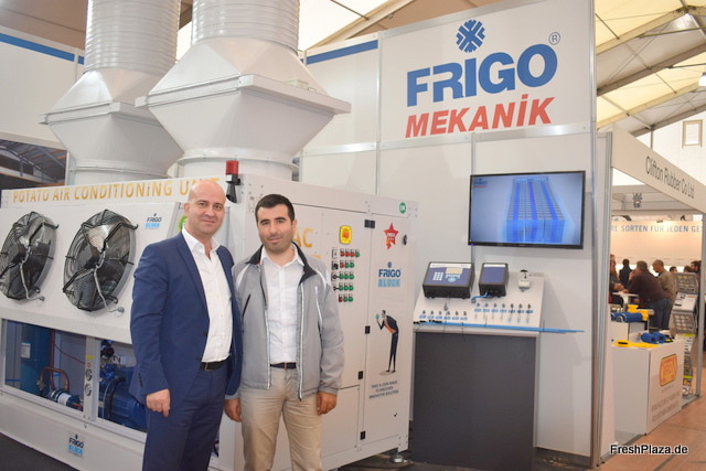Das türkische Unternehmen Frigo Mekanik war für das erste Mal auf der Potato Europe vertreten und präsentierte ihre Belüftungs- und Kälte-Anlage. Ansprechpartner Serkan Altintel (links) begrüßt einen Fachbesucher.