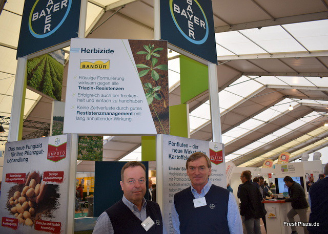 Das Team des Bayer-Konzerns: Hermann Beestermöller und Volkmar Wächter. Das neue Fungizid Emesto wurde neulich zugelassen und wird ab 2019 auch in Deutschland vermarktet.
