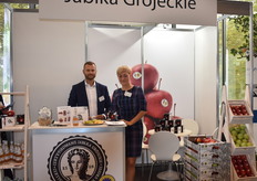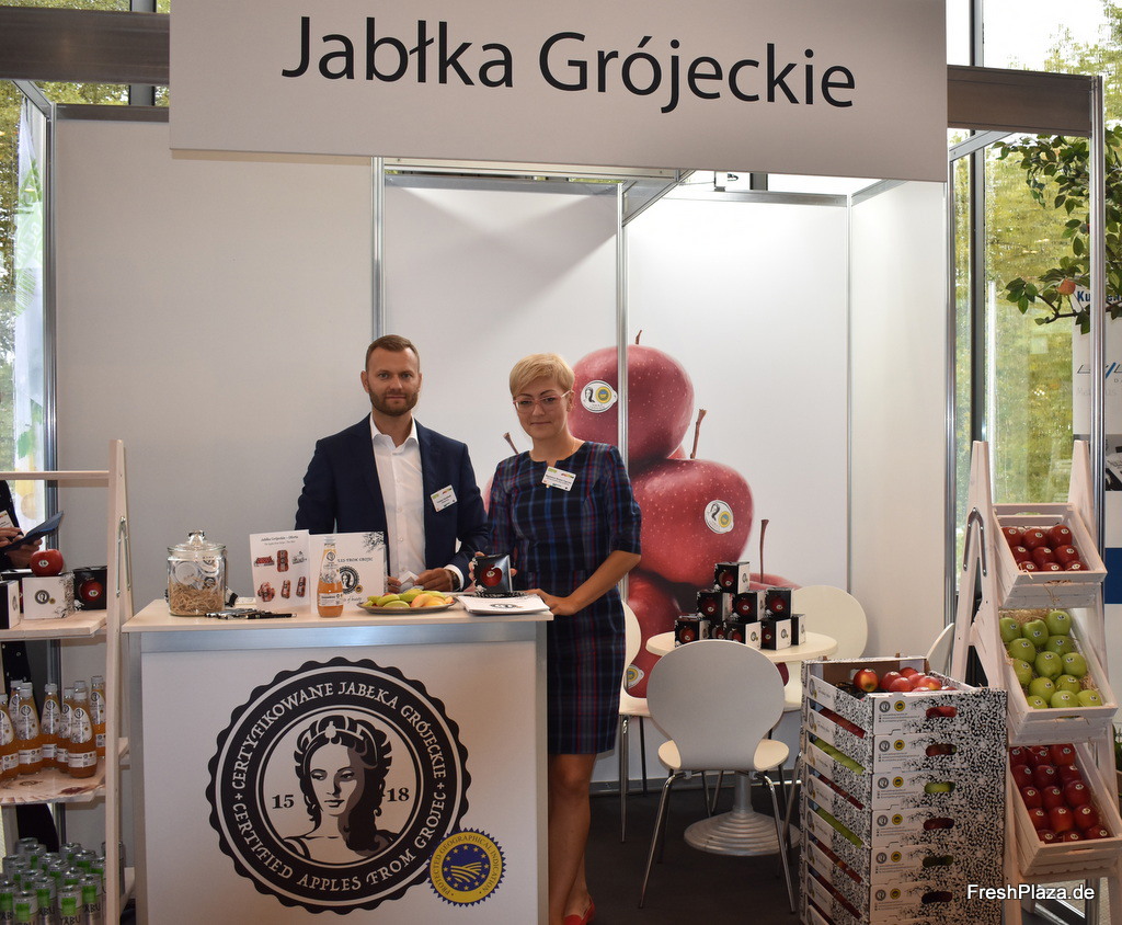 Tomasz Surminski und Magfalena Wrotek-Figarska promoten die Apfelmarke Jablka Grójeckie aus Polnischem Anbau.