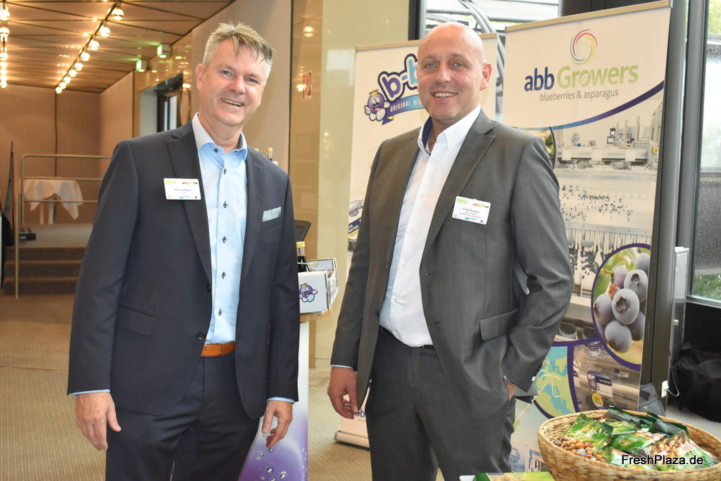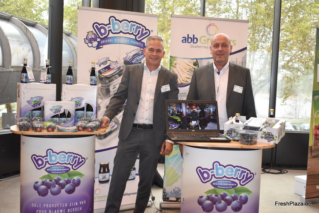 Huub Welles und Fred Douven der Firma Abb Growers zeigen die neuesten Verpackungstrends bei den Kulturheidelbeeren.