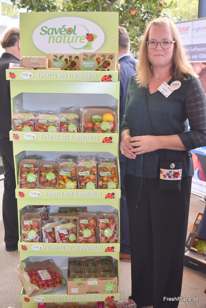 Garance Bricoteau vertritt die französische Genossenschaft Les Domaines und zeigt das breit gefächerte Tomatensortiment der Firma.