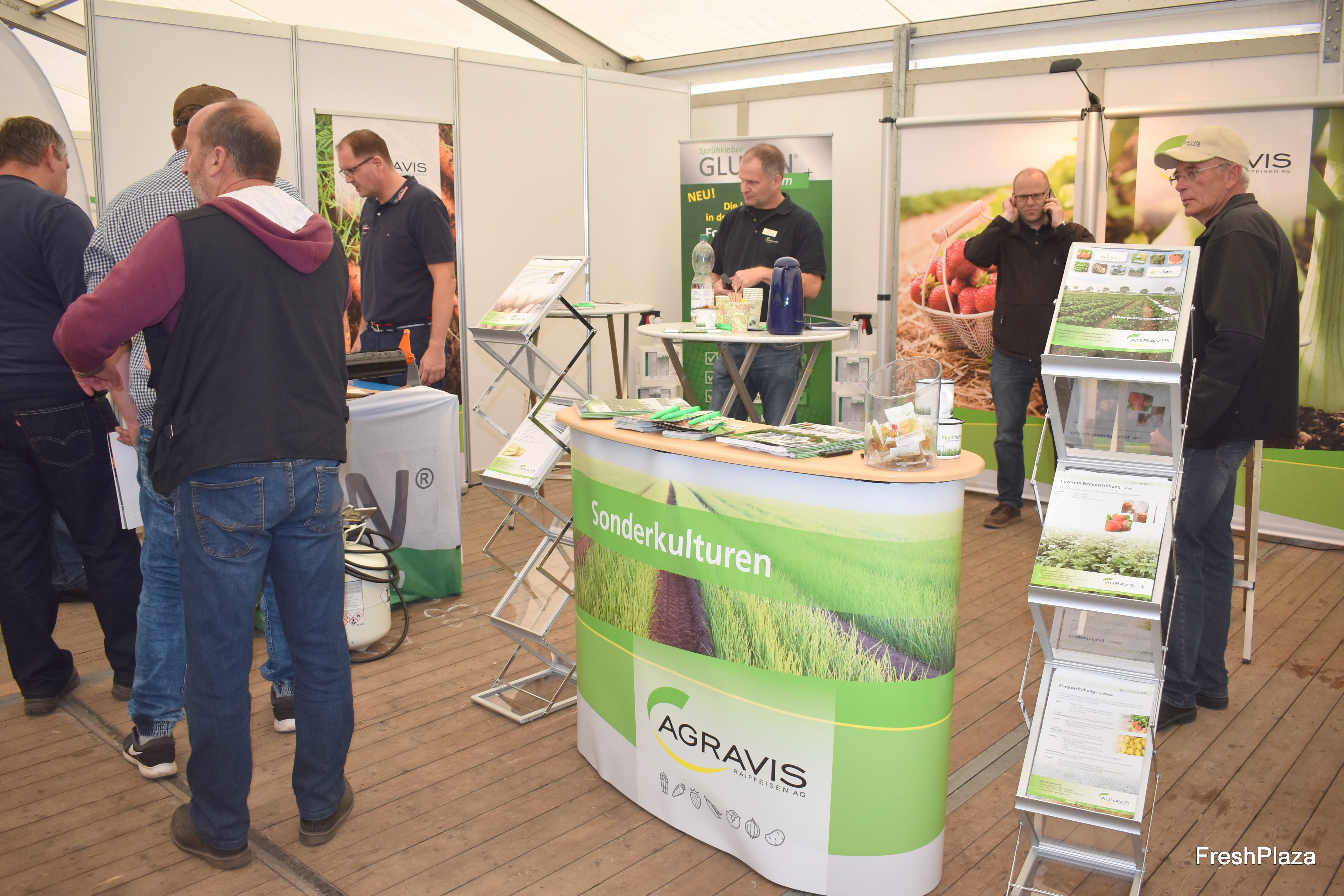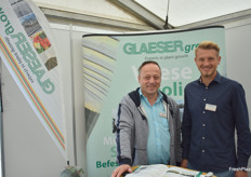 Michael Hirschelmann und Johannes Zott beraten die Erzeuger und Interessenten vor Ort über Vliese und Deckfolien für den Obst- und Gemüsebau.