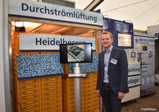 Thomas Frisch des Unternehmens Mefus & Frisch präsentiert mit Stolt das neue Lufttrocknungsverfahren für Beerenobst. Das neuartige Verfahren wird bereits bei einigen Erzeugerbetrieben erfolgreich eingesetzt.