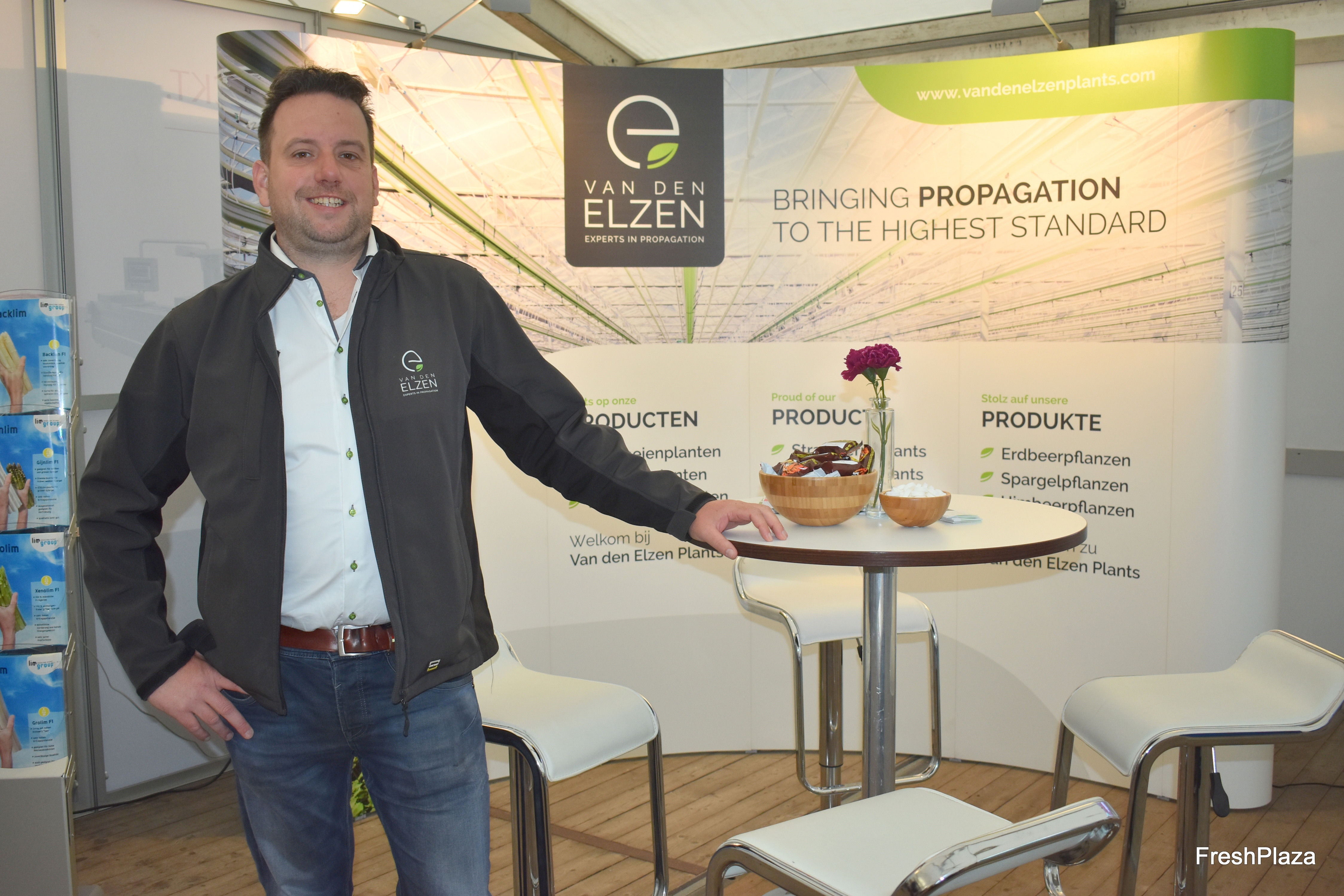 Paul van Lier vom niederländischen Jungpflanzenvertrieb Van den Elzen am Messestand.