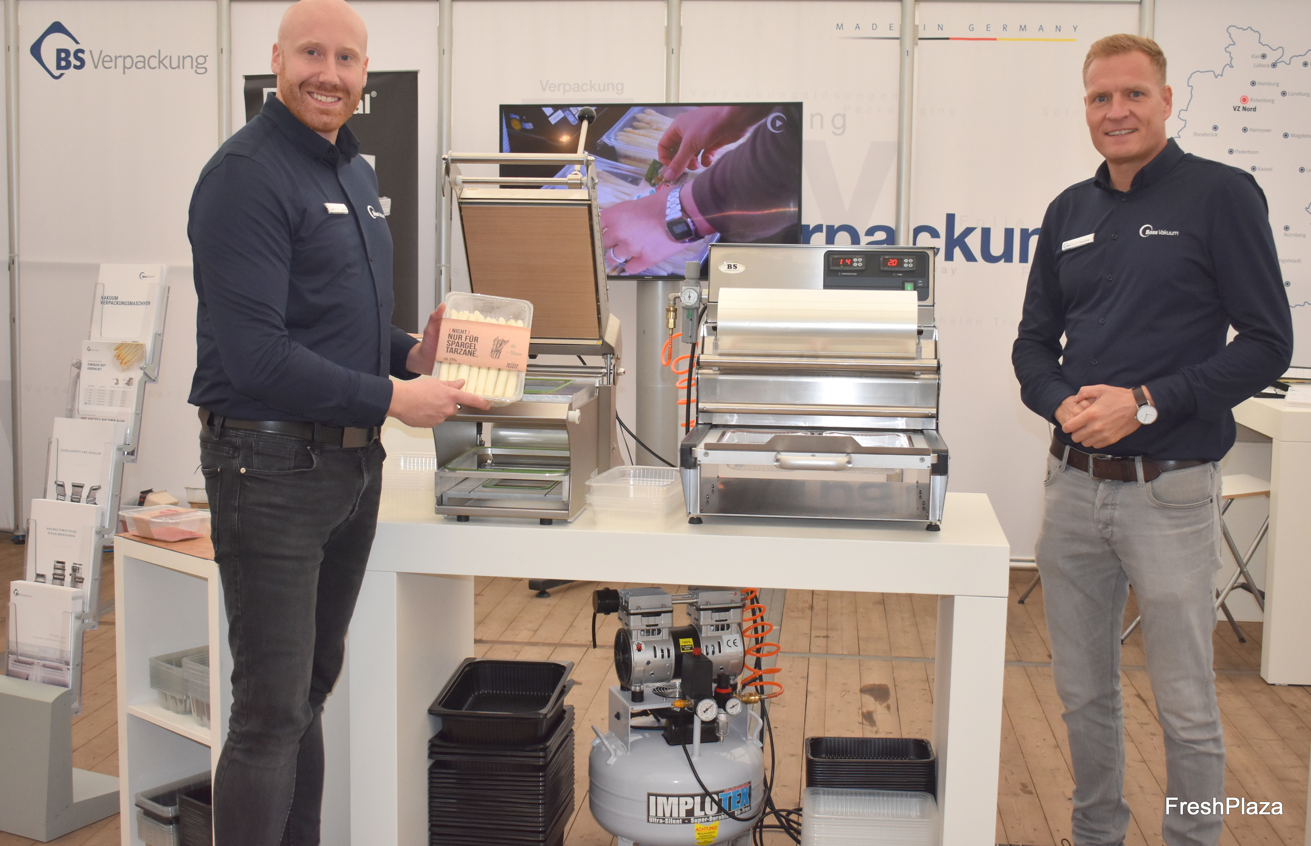 Lars Pahl und Andre Rinne von Boss Vakuum/BS Verpackungen. Markenzeichen des Unternehmens ist die automatische Schalenversiegelung für Spargel und Beerenobst.