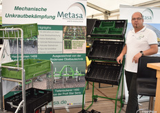 Mechanische Unkrautbekämpfung ist das Hauptthema am Stand der Metase GmbH. Neulich wurde das Verfahren während der Gemüsebau Feldtage am Bodensee mit dem Innovationspreis ausgezeichnet. Jörg Primus steht am Stand für ein Gespräch zur Verfügung, während das Verfahren auf dem Demofeld in Praxis demonstriert wird.