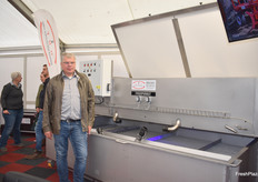 Thomas Hermeler - Geschäftsführer der Firma HMF - zeigt den Durchlaufkühler. Das Verfahren eignet sich für die Kühlung von verschiedenen Gemüseerzeugnissen. Das Unternehmen baut die Anlagen und vertreibt sie ebenfalls an Erzeuger im In- und Ausland.